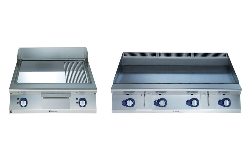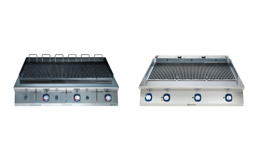 Parrillas de hierro fundido esmaltadas o de acero inox.