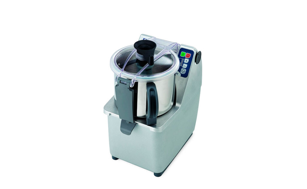 Equipo para licuar, mezclar y picar en cuestión de segundos. Recipiente de 5,5 litros de acero inoxidable. Tapa transparente con posibilidad de agregar ingredientes sin tener que abrirla. Micro cuchillas dentadas en acero inoxidable AISI 420. Todas las partes son fácilmente desmontables y aptas para lavavajillas. Velocidad variable de 300 a 3700 rpm. Posibilidad de convertir a una máquina de corte agregando el accesorio correspondiente.